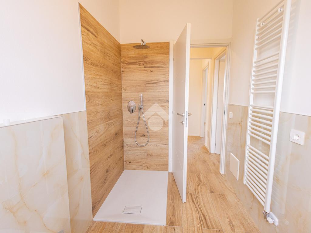 L’ingresso si apre su una luminosa e spaziosa zona giorno, composta da un soggiorno con cucina a vista, ambiente reso particolarmente gradevole dalla presenza di due terrazzi di buone dimensioni, ideali per momenti di relax all’aperto. La zona notte è ben distribuita e comprende una camera matrimoniale, una camera doppia, uno studio – eventualmente utilizzabile anche come terza cameretta – e due bagni finestrati, entrambi dotati di box doccia.